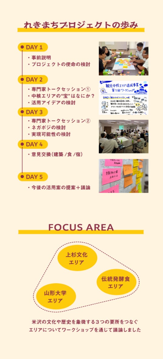 本取り組みは、観光庁より採択を受けた令和7年度「歴史的資源を活用した観光まちづくり推進事業(事業化支援及びモデル創出)」を活用し、歴史的資源の調査や活用の方法の検討を地域一体として行うことを目的とし、短期的な集客や事業化ではなく、「100年後の米沢」を意識しながら丁寧な議論を重ねてきました。