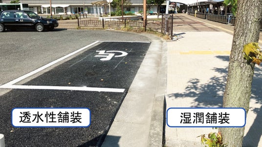 大林組と大林道路は、2022年に雨水流出と路面温度上昇の抑制効果をもつ舗装「ハイドロペイブライト(R)」を開発しました。ハイドロペイブライトは大型車の進入がない軽交通道路(※1)に限られていましたが、材料や舗装強度の改良などにより、駅前ロータリーやショッピングモールの駐車場など大型車が進入できる普通道路(※2)にも適用できるハイドロペイブを開発しました。
