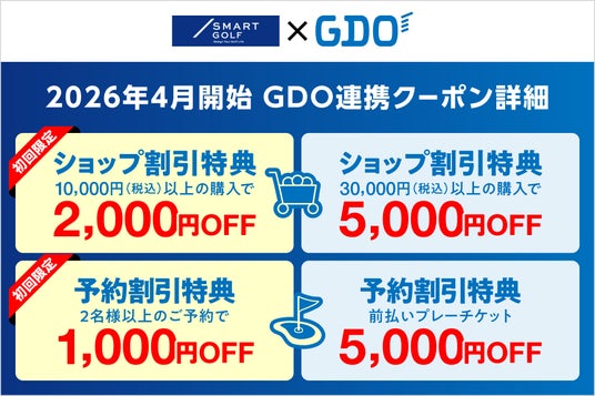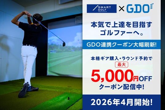 ITを活用した定額制・完全会員制インドアゴルフ練習場「SMART GOLF(スマートゴルフ)」を運営し、インドアゴルフ業界トップクラスの施設数を誇る株式会社SMART GOLF(本社:東京都渋谷区、代表取締役:高須賀優人)は、4月より、株式会社ゴルフダイジェスト・オンライン(以下、GDO)と提携して提供している会員限定の優待クーポンを大幅にリニューアルいたしました。