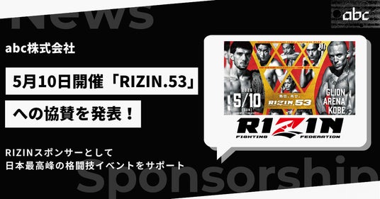 abc株式会社(本社:東京都港区、代表取締役:松田 元、証券コード:8783、以下「当社」)は、2026年5月10日(日)にGLION ARENA KOBEで開催される日本最高峰の格闘技イベント「RIZIN.53」にRIZINスポンサーとして協賛いたします。