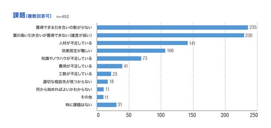 半数以上が引き合いの「量」「質」の向上を目指す。効果測定の難しさも課題
