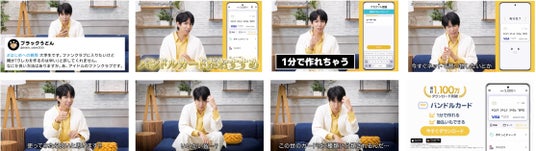 バンドルカードは1分でつくれるVisaプリペイドカードアプリです。最新のWEB CMでは、はじめしゃちょーが、1分間の足ツボ耐久企画中にバンドルカードを登録する企画や、ネット決済方法に困っている大学生の「お金にまつわる課題」に対して、実況・解説するコンセプトなど全6パターンのCMでユーモラスに描いています。