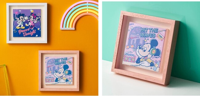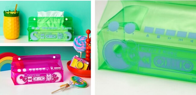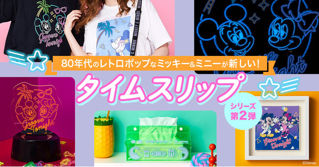 「レトロポップ」がテーマ。暗い場所で光る蓄光プリント使いのショルダーバッグやラジカセデザインのティッシュケース、ネオンサイン風アクリルライトなど、80年代の流行や雰囲気を取り入れた目を引くデザインがポイント。お揃いコーデができるユニセックスTシャツは、凸凹のある発泡プリントやさりげないラメプリント使ってキャラクターを表現しており、テーマパークに行くときはもちろん、大人のディズニーファンが普段のファッションにも取り入れることができるアイテムです。また、インテリア雑貨はお部屋に置くだけで80年代にタイムスリップしたかような空間を演出することができます。