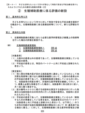 「子どもを願うすべての人によりそい 幸せな人生を歩める社会をつくる」をビジョンに掲げ、LINEを活用した妊活コンシェルジュサービス「famione(ファミワン)」 https://lp.famione.com/ を提供する株式会社ファミワン(本社:東京都渋谷区、代表取締役:石川勇介)は、2022年2月9日に開催された第516回 中央社会保険医療協議会(中央社会保険医療協議会総会)の資料( https://www.mhlw.go.jp/stf/shingi2/0000212500_00139.html )を元に、「生殖補助医療に係る評価の新設」に関する一覧表を作成し、無料公開を行いました。