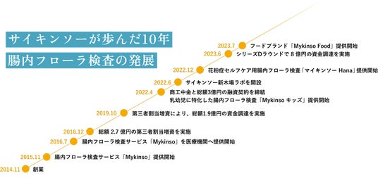 株式会社サイキンソー(本社:東京都渋谷区、代表取締役:沢井 悠、以下サイキンソー)は、2024年11月19日に、創業10周年を迎えることをお知らせいたします。これから先の10年を見据えた活動として、「細菌叢で人々を健康に」という企業理念を社内外に効果的に発信できるよう、コーポレートサイトを全面的にリニューアルいたしました。