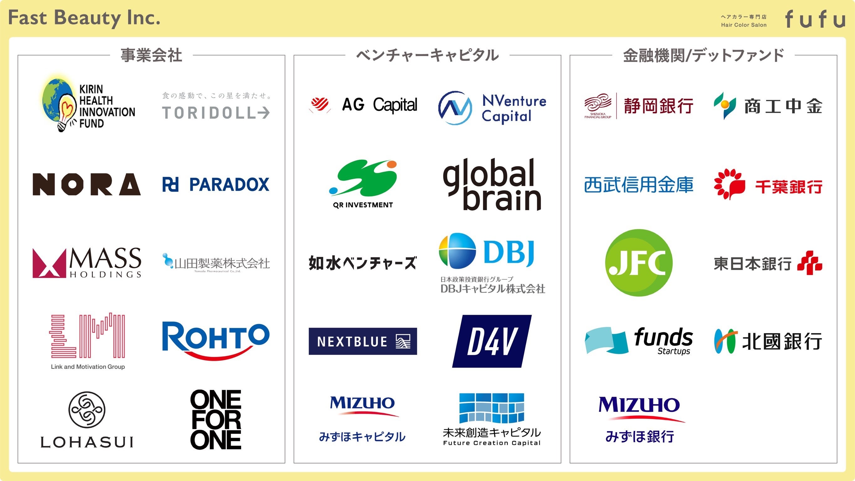 株式会社Fast Beauty(本社:東京都港区、代表取締役社長 高橋 賢)は、ヘアカラー専門店『 fufu』の事業拡大およびDX基盤強化、並びに海外展開の加速を目的に、シリーズBラウンドにおいてエクイティとデットを組み合わせた総額約17億円の資金調達を実施しました。