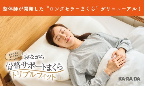 主力商品である「寝ながら骨格サポートまくら」シリーズは、2012年に初代がデビューして以来、これまでの販売歴が12年となるロングセラー商品であり、今回、『寝ながら骨格サポートまくらトリプルフィット』としてリニューアルいたしました。