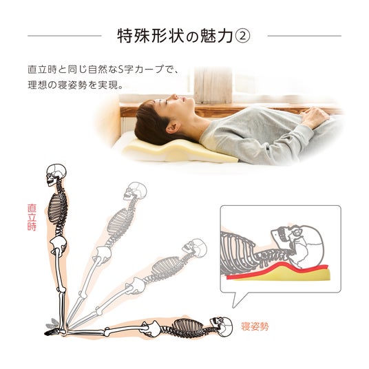 直立時と同じ自然なS字カーブで、理想の寝姿勢を実現。