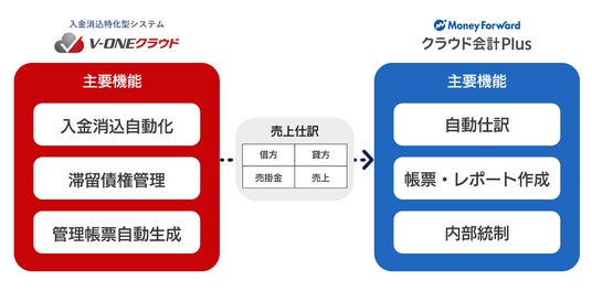 株式会社アール・アンド・エー・シー(東京都中央区、代表取締役社長 太刀川秀臣、以下R&AC)が販売する入金消込特化型システム「V-ONEクラウド」は、株式会社マネーフォワード(東京都港区、代表取締役社長CEO 辻庸介、以下マネーフォワード)が販売するクラウド会計ソフト「マネーフォワード クラウド会計Plus」に売上仕訳を連携できるAPI機能をリリースしました。