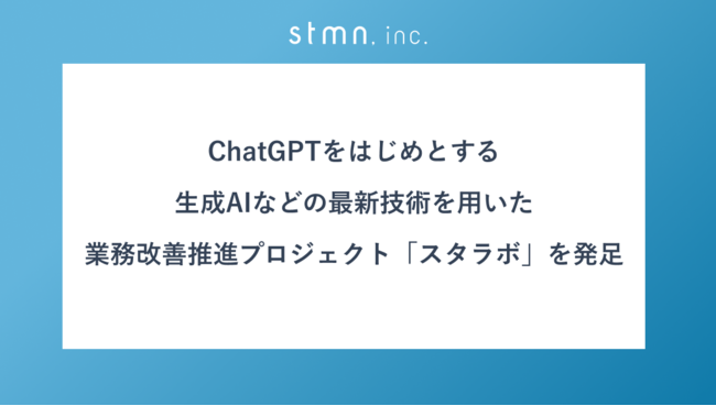 株式会社スタメン(本社:愛知県名古屋市、代表取締役:大西 泰平、以下 スタメン)は、最新技術を取り入れた業務改善のためのプロジェクト「スタラボ」を発足しました。