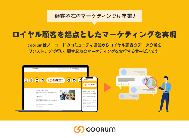 「coorum(コーラム)」は、コミュニティ運営から顧客分析までをワンストップで行い、ロイヤル顧客を起点としたマーケティング・事業戦略を実現するロイヤル顧客プラットフォームです。