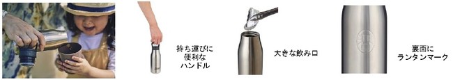 保冷保温効果が高く、持ち運びに便利なステンレス真空ボトルです。家庭用氷も入れやすい大きな飲み口で、パーツが少なくお手入れ簡単なので、日常使いをしてもストレスがありません。また、大きなハンドルとシリコンゴムが付いたふたは持ちやすく、子供でも開け閉めしやすい形状です。容量350mlと590mlの2サイズ展開です。