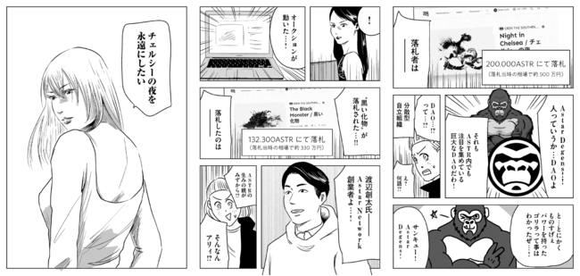 今回『左ききのエレン』の登場人物である山岸エレンが作中で描いたストリートアートである『黒い化物』が132,300ASTR(約330万円)、『チェルシーの夜』がAstar Network史上最高額である200,000ASTR(約500万円)で落札され、山岸エレンという架空のキャラクターが描いた作品に対して、高い評価を獲得しました。