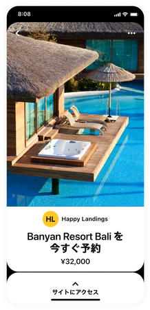 Pinterest の商品カタログテクノロジーを応用したトラベルカタログを利用すると、旅行商品を簡単にプラットフォームへアップロードできます。アップロード後、Pinterest はカタログに含まれているそれぞれの商品を動的で購入可能なプロダクトピンに自動変換します。プロダクトピンには、ホテルブランドの名前、価格、画像、説明に加え、予約ウェブサイトへのリンクなど、旅行の予約に関する情報が掲載されます。また、ユーザーのフィードから取得した位置情報に基づいてターゲティングを行い、さらに多くのユーザーにリーチすることも可能です。
