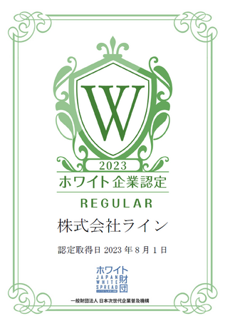株式会社ラインは2023年8月1日に「ホワイト企業認定 レギュラーランク」を取得されました!