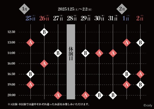 また上演は【A公演】【B公演】の2種類があり、途中それぞれ違った物語を楽しむことができる。チケットは本日よりキャスト先行がスタート。