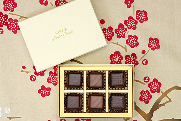 内容量 :1箱6粒入(熟成梅酒×ガナッシュ2粒/完熟梅×ジュレ2粒/熟成梅酒×プラリネ2粒)