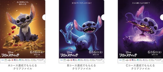 1コースにつき3施設を巡る計3コースのスタンプラリーを開催。1コース3施設全てのスタンプを集め、対象コースの映画館<109シネマズ>に持っていくと、映画『リロ&スティッチ』の限定オリジナルクリアファイルを先着合計3,000名にプレゼント。3コース9施設全てのスタンプを集めると「Wチャンス賞」として映画オリジナルグッズの抽選に応募できます。また、各施設に設置されたフォトロケーションにある二次元コードを読み取ると、もれなくスマートフォン用ポスターアート壁紙をダウンロードできます。