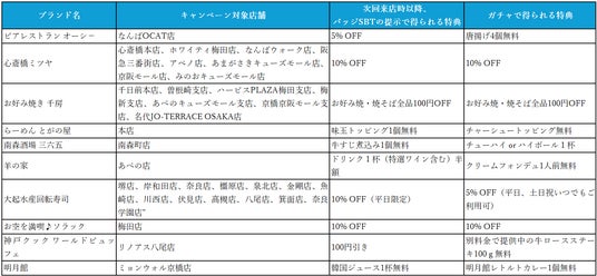 ◆対象ブランドと店舗・特典内容(今後参加店舗は順次追加・変更になる予定がございます)