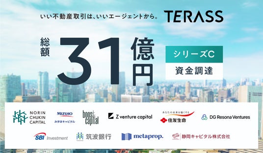 不動産仲介関連サービスを提供する株式会社 TERASS(東京都港区、代表取締役:江口亮介、以下「TERASS」)は、農林中金キャピタル株式会社、みずほキャピタル株式会社、ブーストキャピタル株式会社、Z Venture Capital株式会社など10社を引き受け先とする、総額31億円(第三者割当増資20億円、既存株主による株式譲渡(セカンダリー取引)11億円)のシリーズCラウンドを実施いたしましたので、お知らせいたします。