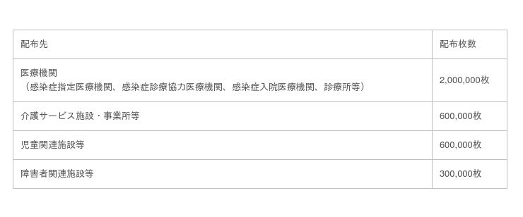 この度、都において購入したマスクを、下記のとおり医療機関、社会福祉施設等に配布しますので、お知らせいたします。