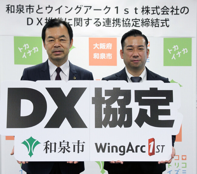 大阪府和泉市(市長:辻 宏康)とウイングアーク1st株式会社(住所:東京都港区、代表取締役 社長執行役員CEO 田中 潤)は、市政のデジタル化による庁内業務の効率化と住民サービスの向上を図ることを目的に「DX(デジタルトランスフォーメーション)連携協定」を4月19日(水)に締結しました。