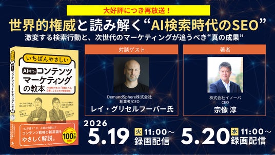 BtoBマーケティングの伴走型支援を行う株式会社イノーバ(本社:東京都新宿区、代表取締役:宗像 淳)は、2026年4月16日・17日に開催し、大変ご好評をいただいた無料オンラインセミナー「世界的権威と読み解く“AI検索時代のSEO”」の再放送を決定いたしました。