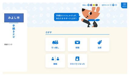 みよし市は、総務省が推進する令和5年度自治体フロントヤード改革モデルプロジェクトに採択されました。その支援事業を株式会社ガバメイツ(以下ガバメイツ)が受託し、アスコエパートナーズのナビゲーション形式で簡易な質問に答えていくことで必要な手続きを探すことができる『わたしの手続きコンシェルジュ:手続きナビ』の導入に至りました。