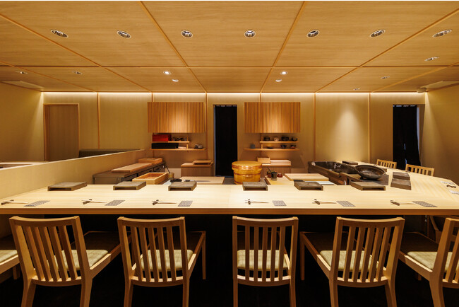 こちらの店舗では上述のおまかせコースをベースとしつつ、日本酒の専門家である日本酒版ソムリエ、SAKE DIPLOMAの資格を保有したスタッフセレクトによる全国から厳選した日本酒と鮨の極上ペアリングが楽しめる「SAKEペアリングコース」もご用意。