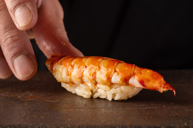 ネタへのこだわりはもちろん、シャリにも徹底的にこだわりました。少し硬めに炊き上げたシャリには、10年寝かせた酒粕を使った愛媛県の「一梅酢」を採用。熟成赤酢ならではの酸味が、ネタ、米の味わいを引き立てます。