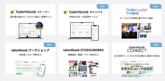 あわせて、既存の採用広報サービスを「タレントブック・ストーリー」として正式にシリーズ化。「ロールモデル」を起点とする採用支援ソリューションとして展開してまいります。