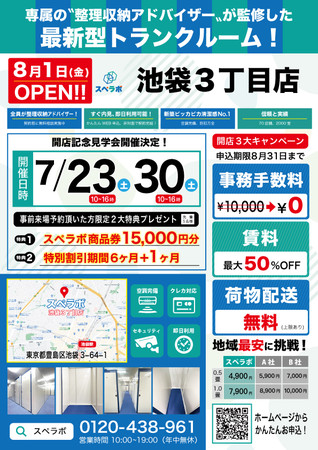 株式会社UKCorporation(本社:東京都千代田区)は「見学から契約、解約まで完全非接触・非対面!更にお申し込みからご利用まで最短1時間!」のトランクルーム【スペラボ】をに8月1日(月)豊島区池袋3丁目にオープン致します。