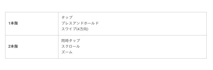 タッチ位置だけではなく、以下のジェスチャーを取得することができる