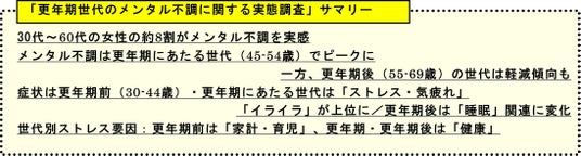 ~更年期前は「家計・育児」、更年期後は「健康」など世代別で感じるストレスが異なることも判明~