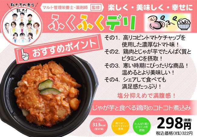 さて、昨年度5月より開始いたしました「福幸プロジェクト」の、マルトの薬剤師と管理栄養士が監修開発した「ふくふくデリ」ブランド第4弾として6品目の商品を販売開始いたします。