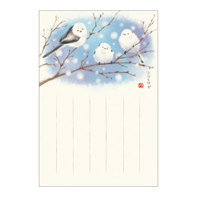 季節の絵入りはがきの冬柄です。見ただけで冬を感じられる絵柄を揃えました。「シマエナガ」は今回が初登場です。寒中見舞いや近況報告用のはがきとしてご活用ください。