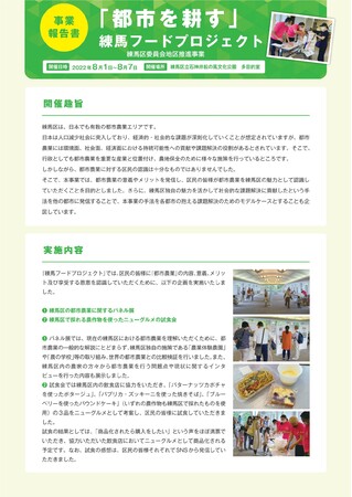 2022 年の活動のテーマとして「都市を耕す」を掲げ、練馬区の都市農業に関する事業(イベント)の事業報告書が9月27日に完成しました。