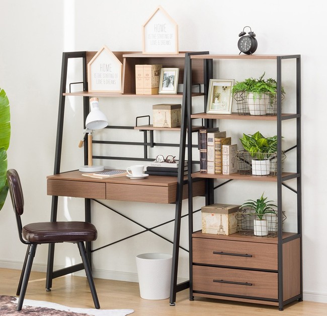デスク+シェルフ+追加引出し(40,526円 ⇒ 35,790円)※ミドルブラウン、ライトブラウンの2色展開