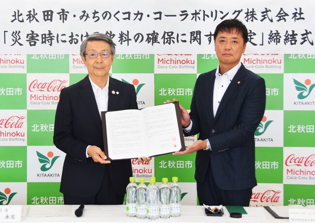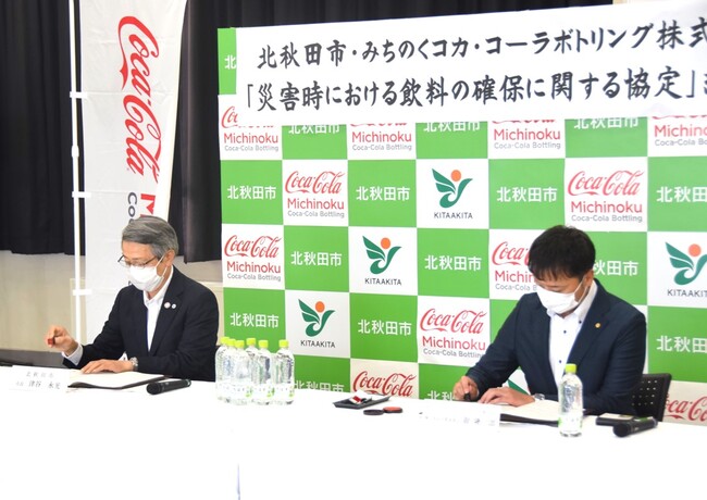 このたび、みちのくコカ・コーラボトリング株式会社(本社: 岩手県盛岡市、代表取締役社長: 谷村 広和)は、秋田県北秋田市(市長: 津谷 永光)との間で、「災害時における飲料の確保に関する協定」を締結することとし、7月26日(水)に締結式を開催いたしました。