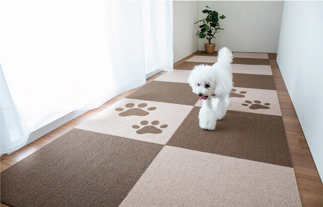 今回のイチオシ商品「おくだけ吸着おあそびマット肉球」は、裏面吸着加工で床にピッタリくっつくから、ズレる心配がなくて安心!撥水加工で汚れを拭き取れるのもポイントです!