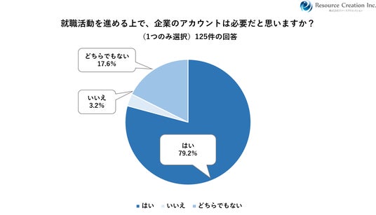 「転職活動において、企業のSNSアカウントは必要だと思いますか?」という質問に対し、79.2%の求職者が「はい」と回答しました。