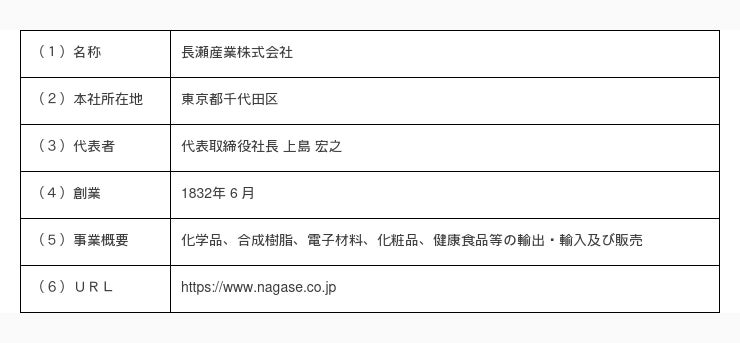 長瀬産業株式会社 グローバルコミュニケーション本部 広報室 TEL:03-3665-3640