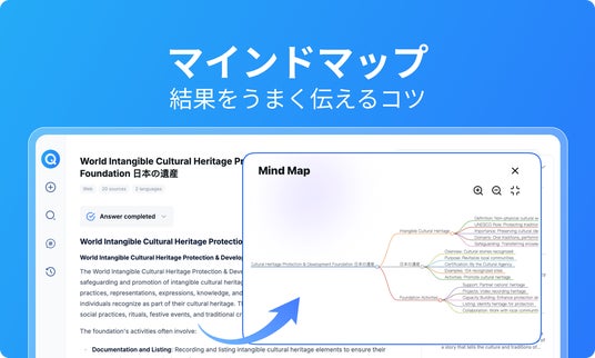 Felo AIのマインドマップ機能とトピック機能も無形文化遺産研究者に好評です。彼らは「Felo AIを使った後、作業効率が大幅に向上した。生成された結果はマインドマップとして作成でき、迅速にPPTに貼り付けられるため、コンテンツ制作の時間が大幅に短縮された」と評価しています。トピック機能は生成された結果を分類し、再度の検索や特定の問題への質問を容易にします。