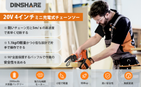 DINSHAREの20Vミニチェーンソーの特徴紹介