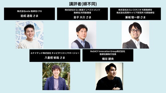 計24チームがこれまで前期のレクチャーおよびメンタリングを経て構築した事業アイデアを「株式会社estie 取締役 CTO 岩成 達哉さま」、「株式会社みらい創造インベストメンツ 取締役/共同創業者 金子 大介 さま」「株式会社みらいスタジオ 代表取締役、株式会社高専キャリア研究所 代表取締役 兼城 駿一郎 さま」「ユナイテッド株式会社 キャピタリスト/マネージャー 八重樫 郁哉 さま」、「ReGACY Innovation Group株式会社 取締役兼執行役員 桶谷 建央」に対して発表しました。