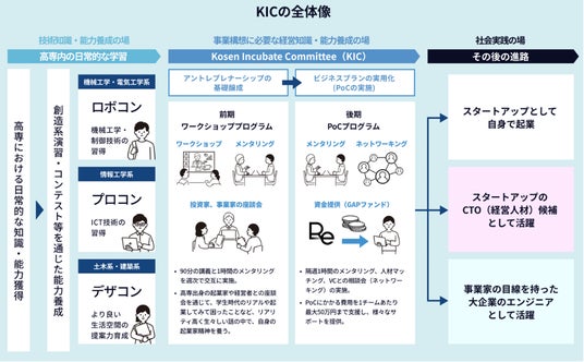 弊社はKICを通じて、起業家やスタートアップ、経営人財として重要なアントレプレナーシップを醸成し、全国の高専生のキャリア形成につなげていきます。弊社はKICを通じて、起業家やスタートアップ、経営人財として重要なアントレプレナーシップを醸成し、全国の高専生のキャリア形成につなげていきます。