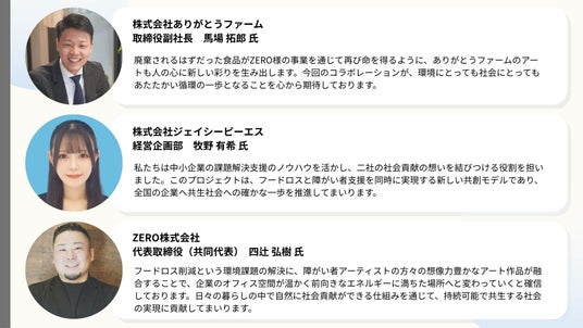 こうした2つの社会課題に同時に取り組むべく、フードロス削減サステナ自販機「ZERO BOX」を展開するZERO、障がい者の創造的活動を支援するありがとうファーム、中小企業支援を行うJCPSの3社が連携し、「ZERO+プロジェクト」をスタートさせました。