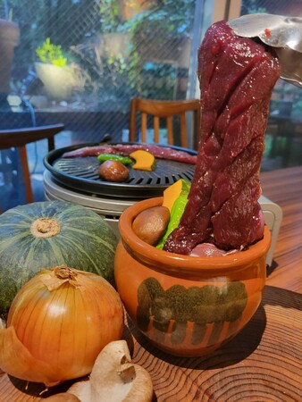 さっぱりとした脂身と深い味わいの赤身が特徴の猪肉。ターンテーブルオリジナルのタレに付け込むことで、お肉の旨味を引き出し肉質も柔らかくなります。