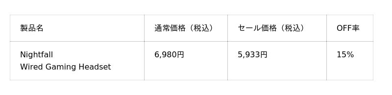 セール価格一覧