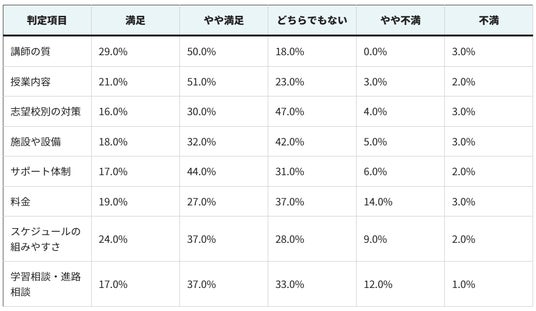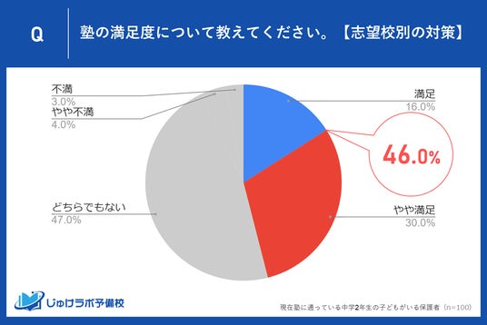 志望校別対策に対する満足度は46%が評価。改善の余地あり
